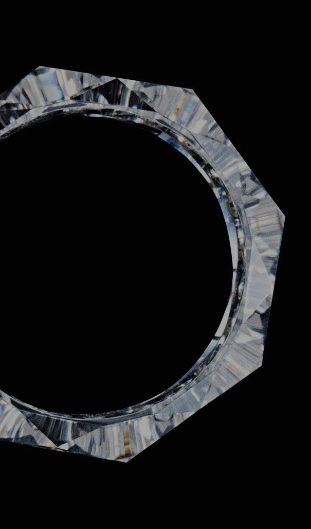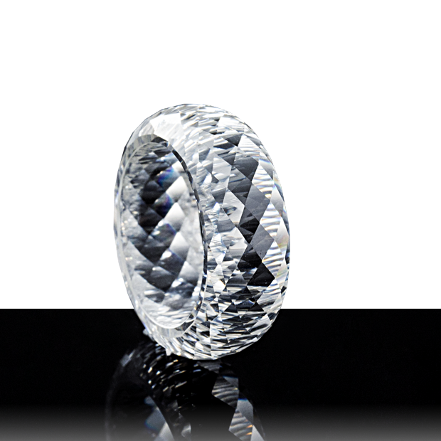 ロンバスカット - 長年培った加工技術により、モアサナイトが最も輝きを放つ『ロンバスカット』に辿り着きました。輝きを最大限に活かすラディアン独自のカット技術が、輝きと透明感をもたらします。※意匠出願中