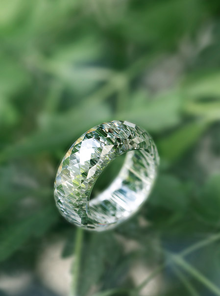 高品質な原石と加工技術 - モアサナイトの中でも透明度が優れた石のみを厳選しています。モアサナイトの原石は切断(カット)研磨(ポリッシュ)次第で「輝き」や「価値」が大きく変わります。 高品質な原石と技術に自信があるRADIANNだからこそモアサナイトのみを使ったリングが作れるのです。