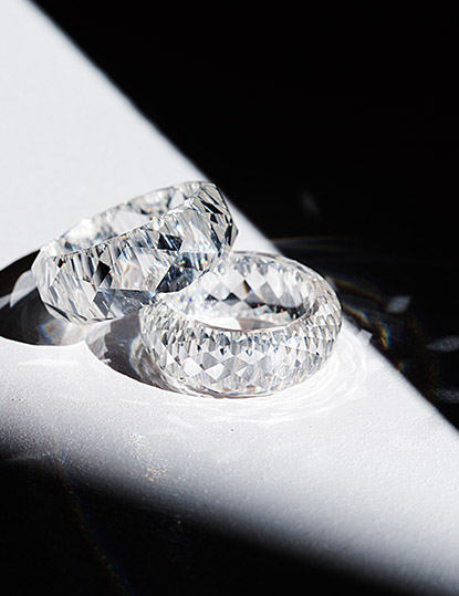 知恵と努力の結晶として再誕 - 自然に存在しえない稀有な鉱石。神秘の光にふたたび出会うまでには、さらに100年の歳月を要しました。アメリカ・ノースキャロライナ州のチャールズ&コルバード社とCREE社の化学者たちが心血を注ぎ、1993年、ついにモアサナイトの再現を果たしたのです。それは運命を共にすることを誓った恋人と、時を越えて巡り会うように。宇宙から贈られ、人の叡智によってもたらされたのが、この、星のかけらのように眩しい宝石なのです。